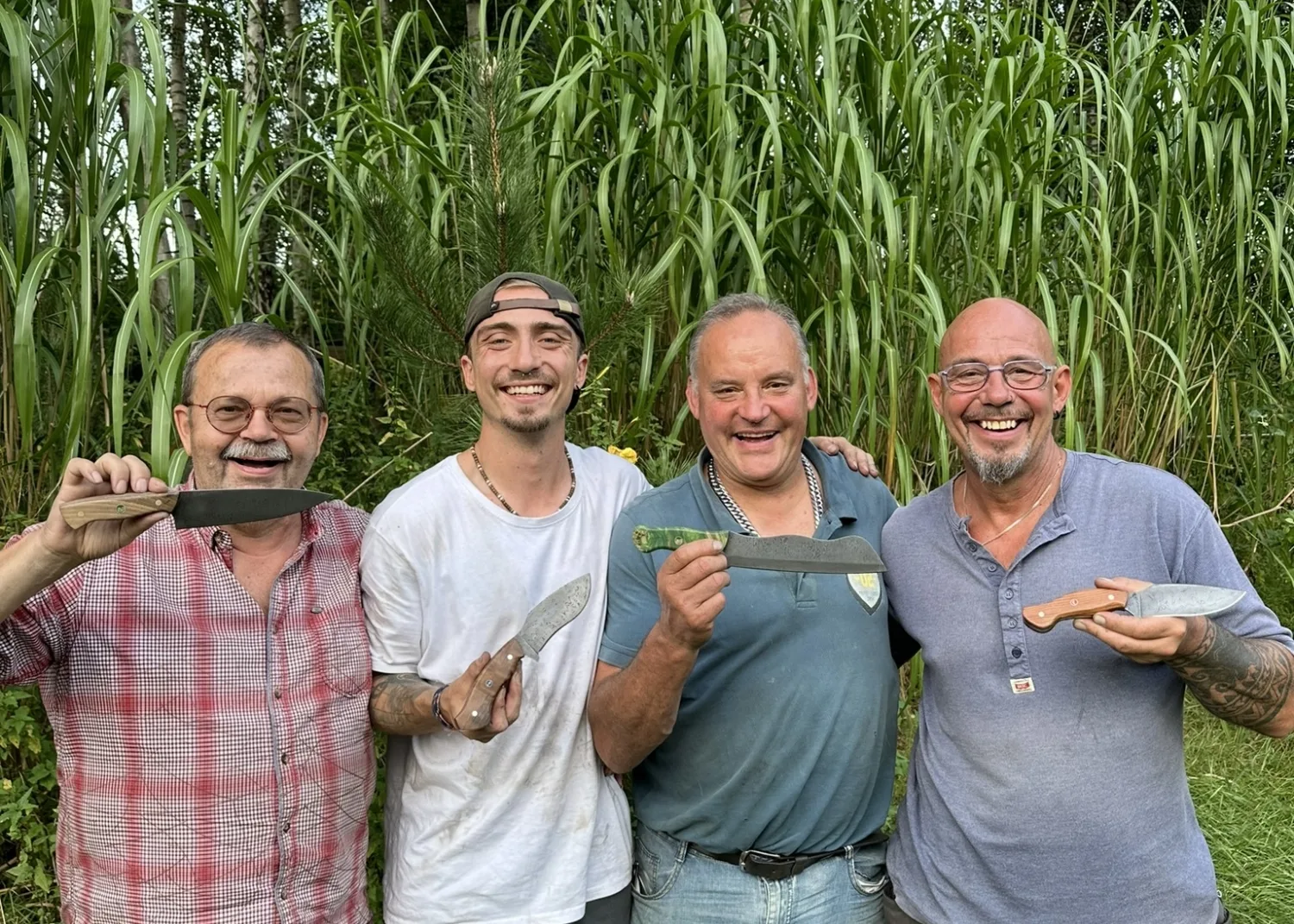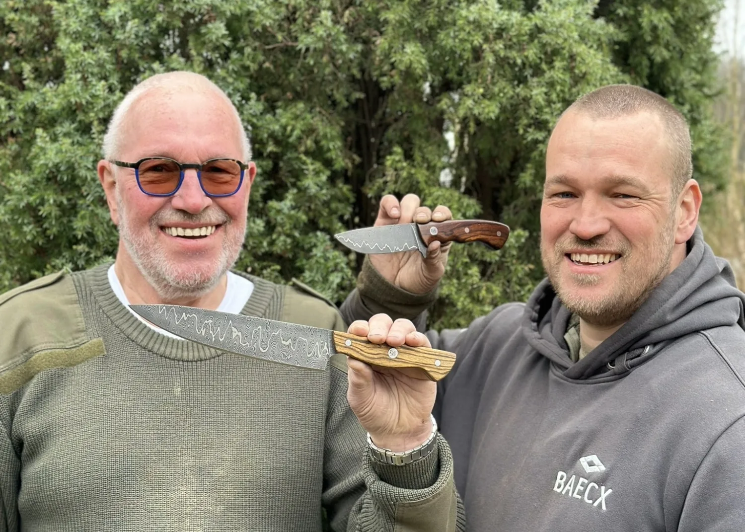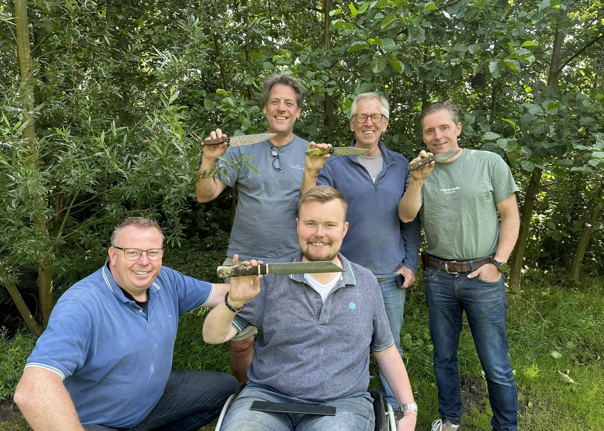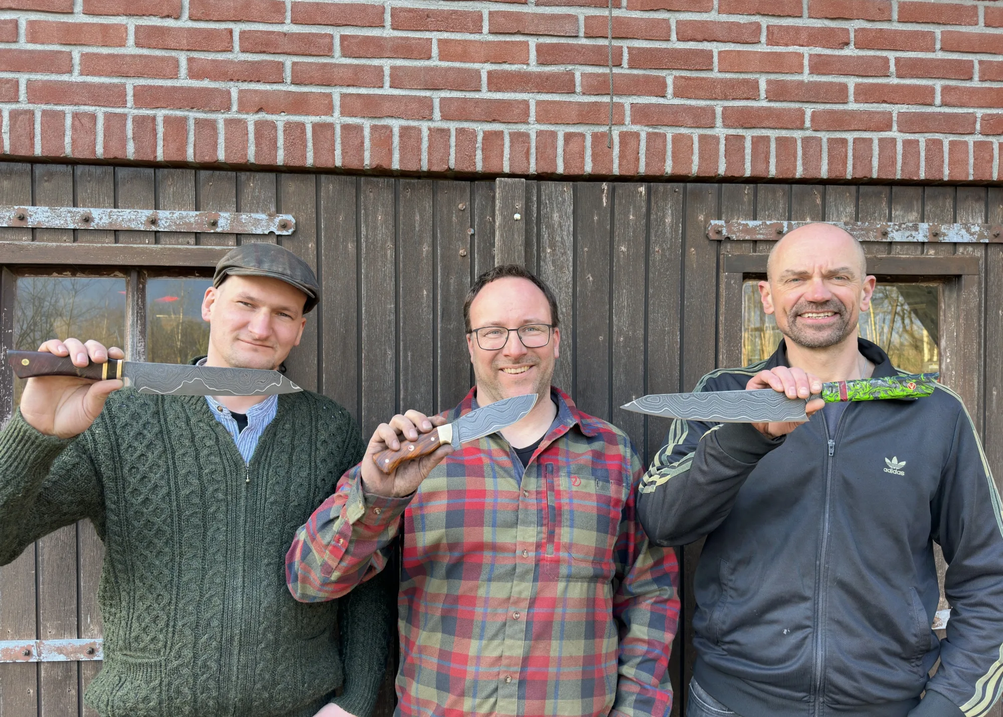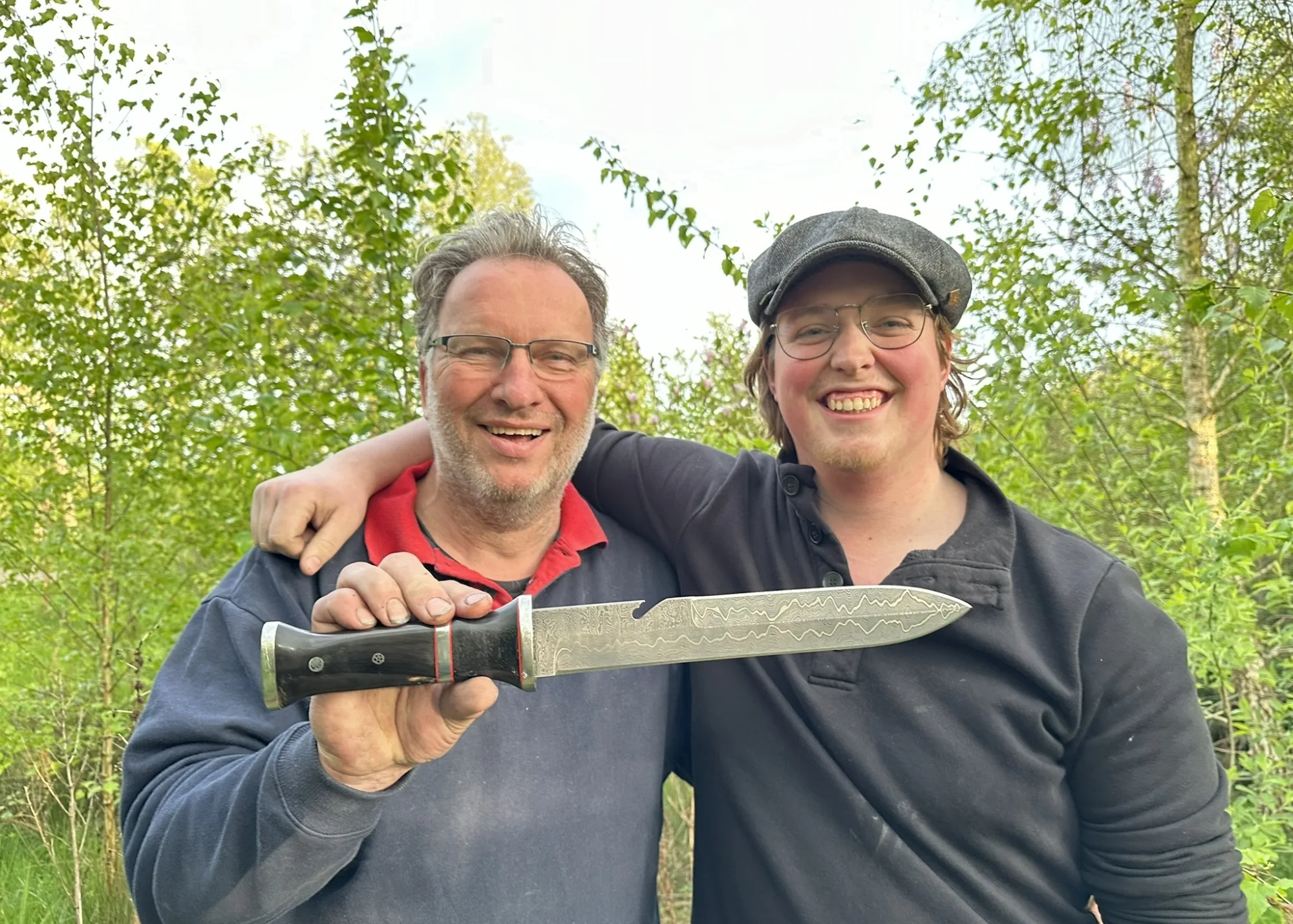 Deze smeden gingen u voor en presenteren hier hun zelfgemaakte mes. Iedereen vol enthousiasme over het smeden, de omgeving, de lunch, de verzorging en het prachtige resultaat. Zeker het van A tot Z zelf mogen doen werd gewaardeerd.