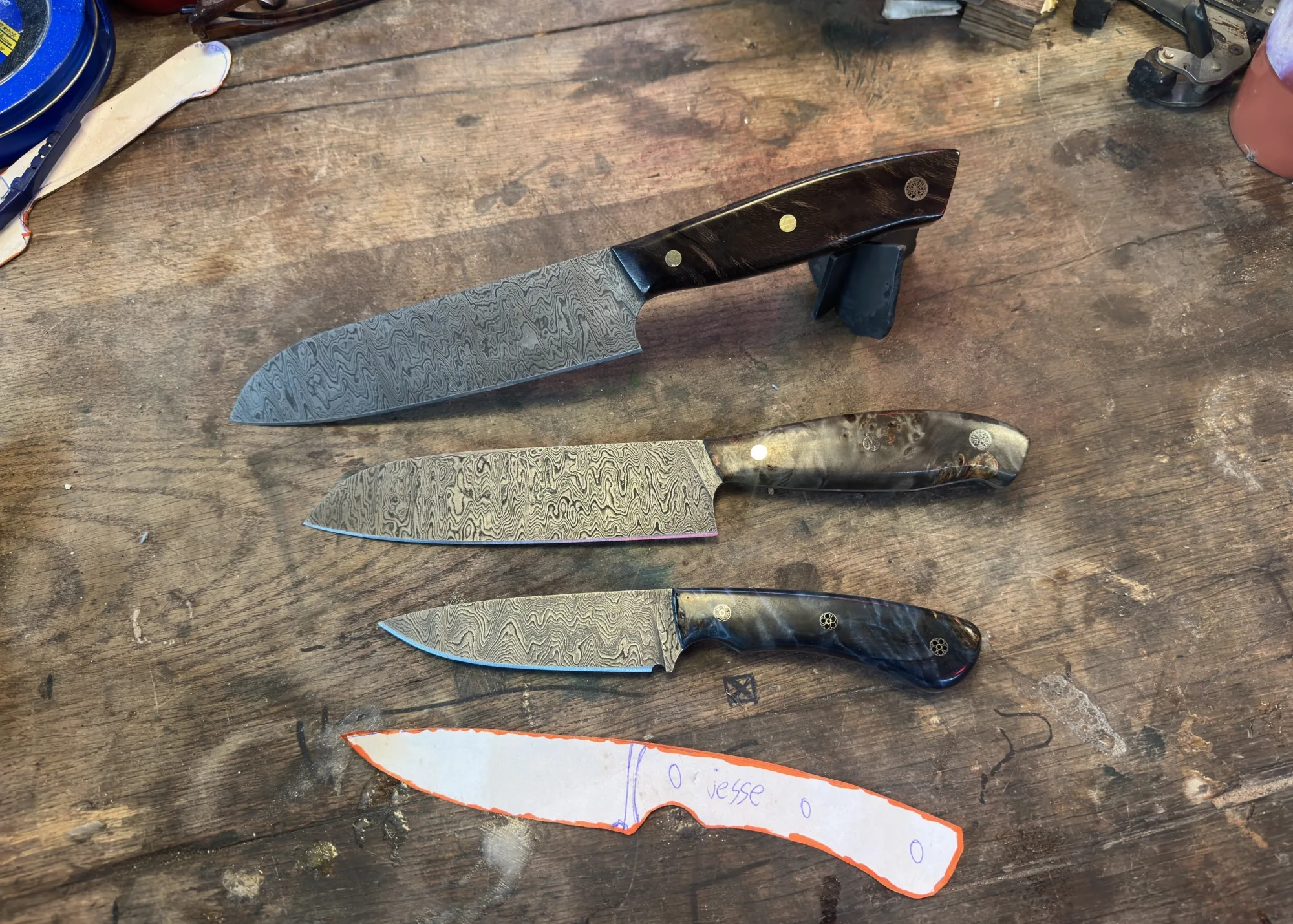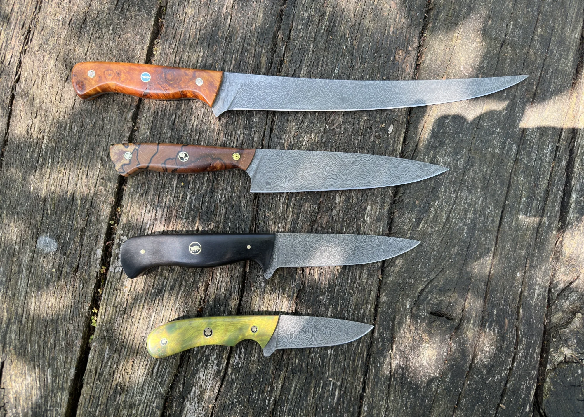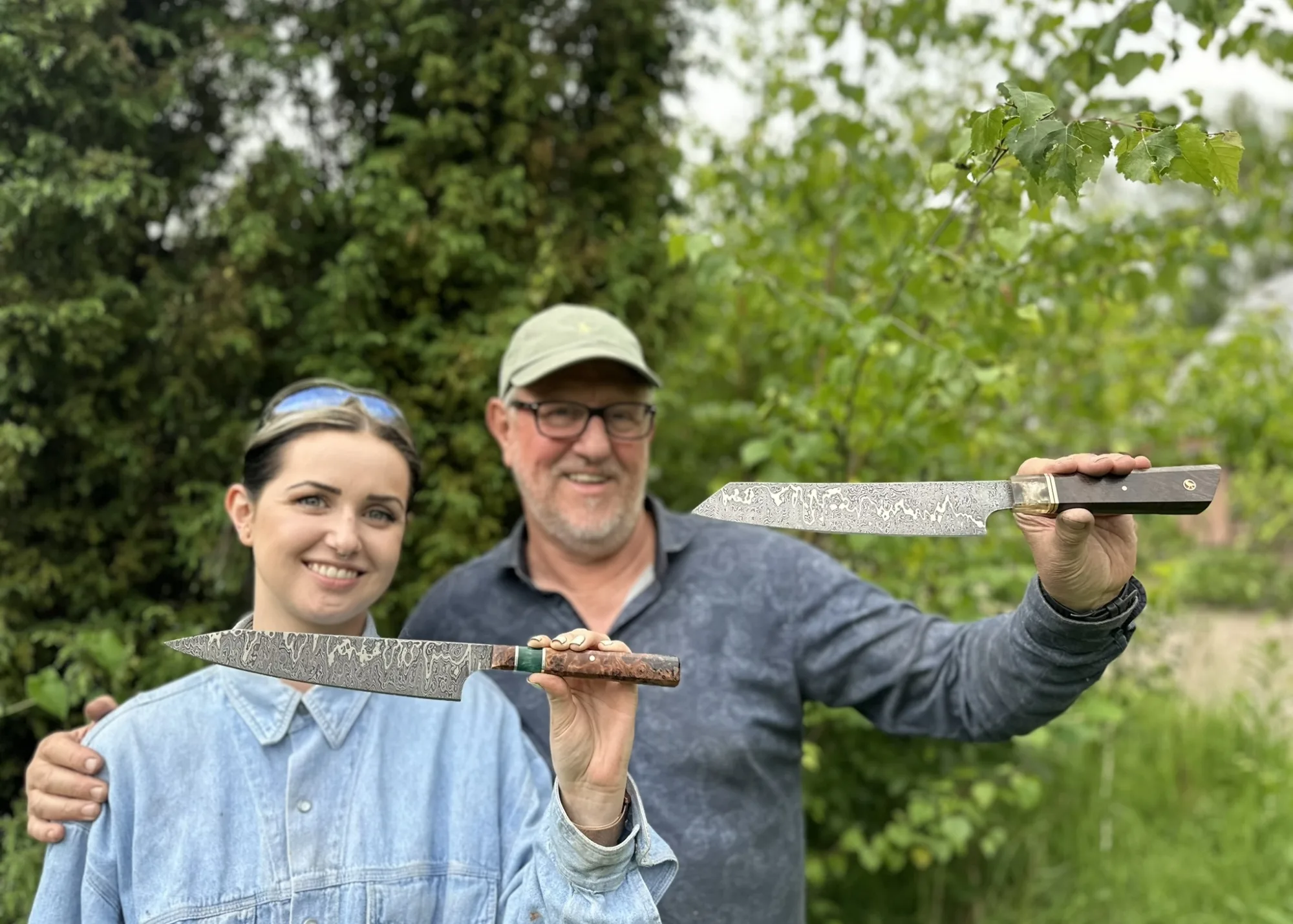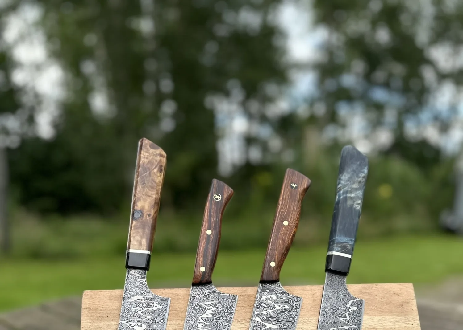 Deze smeden gingen u voor en presenteren hier hun zelfgemaakte mes. Iedereen vol enthousiasme over het smeden, de omgeving, de lunch, de verzorging en het prachtige resultaat. Zeker het van A tot Z zelf mogen doen werd gewaardeerd.
