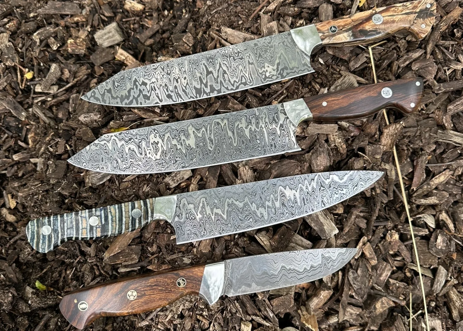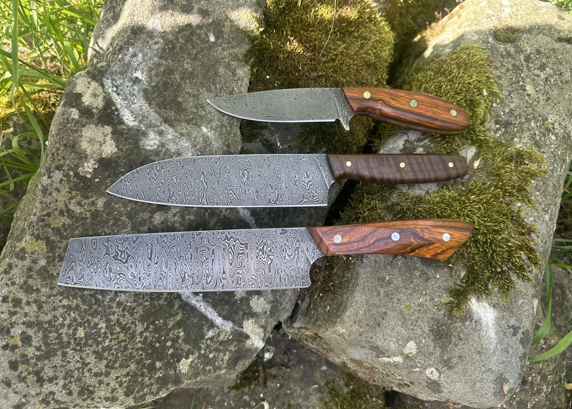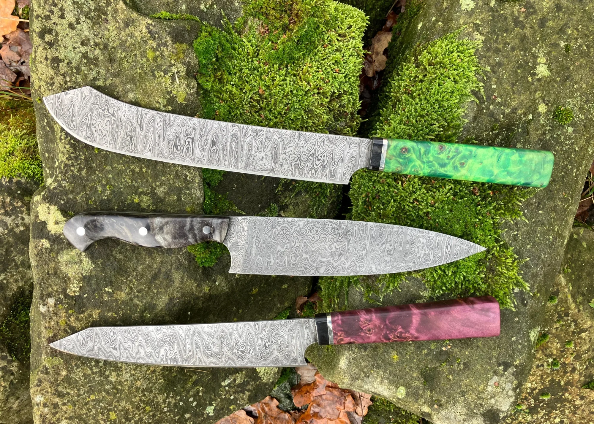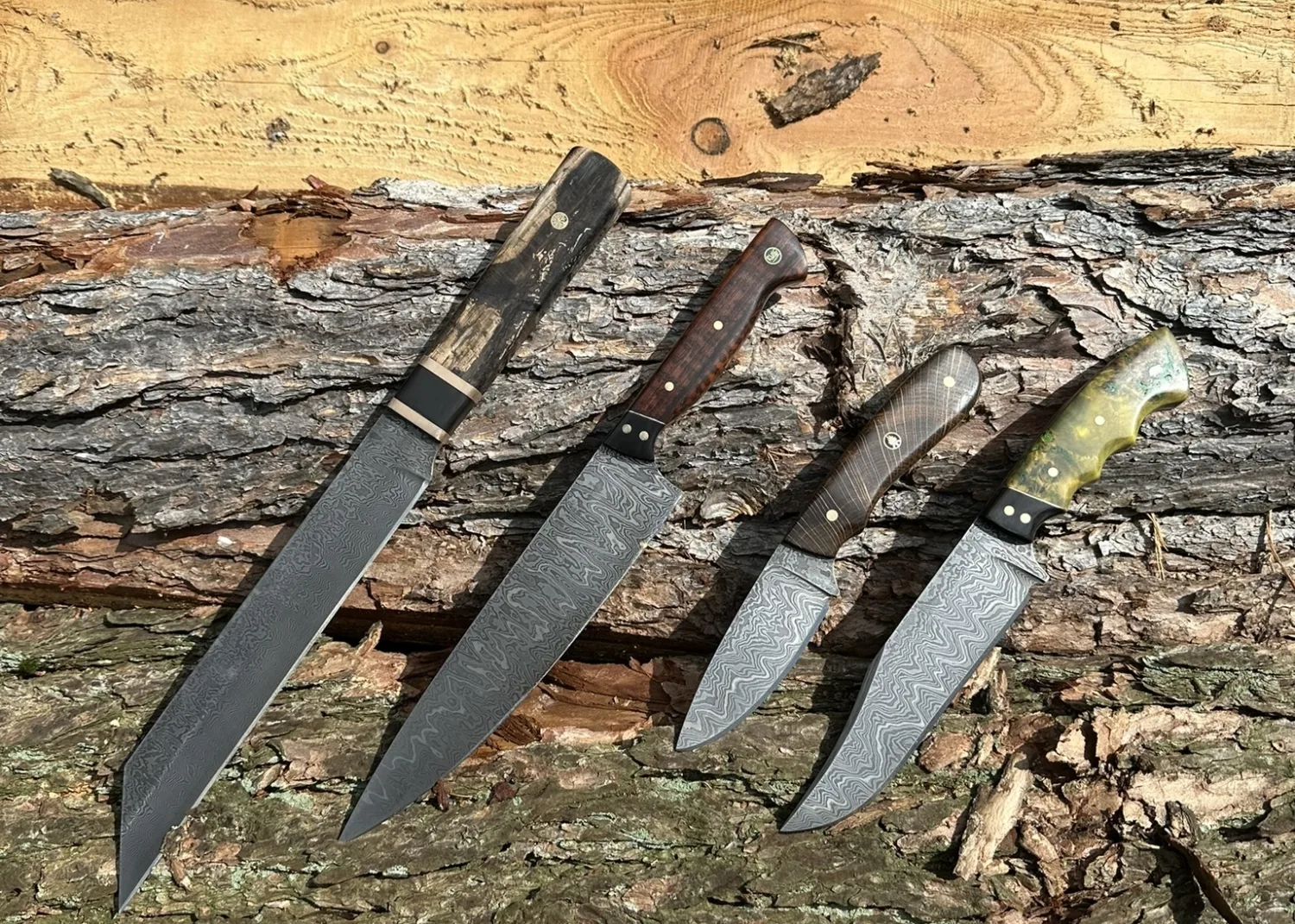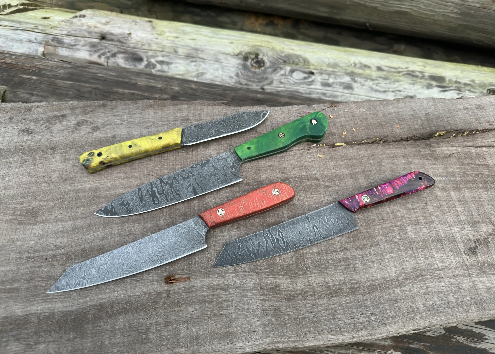 Deze smeden gingen u voor en presenteren hier hun zelfgemaakte mes. Iedereen vol enthousiasme over het smeden, de omgeving, de lunch, de verzorging en het prachtige resultaat. Zeker het van A tot Z zelf mogen doen werd gewaardeerd.