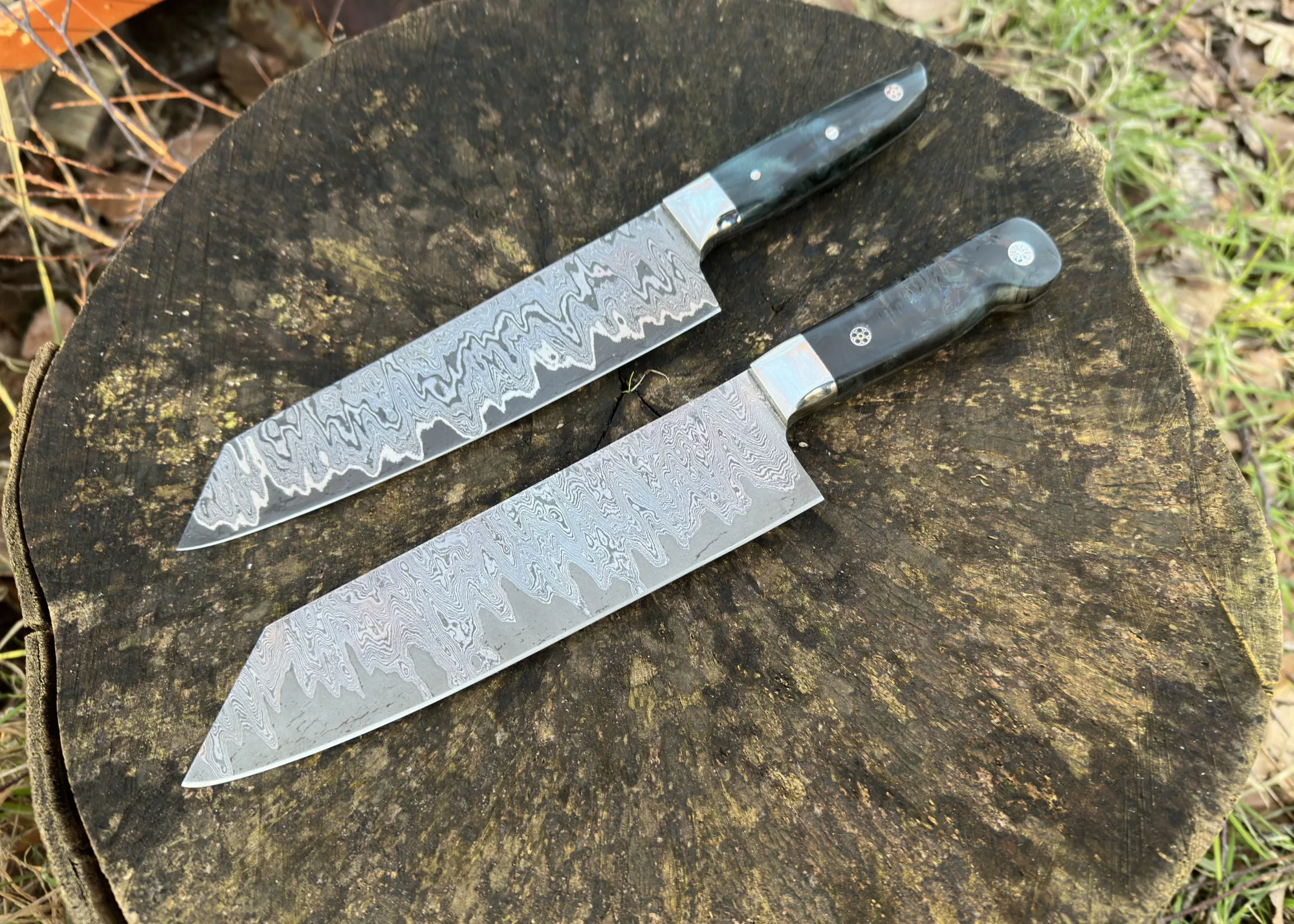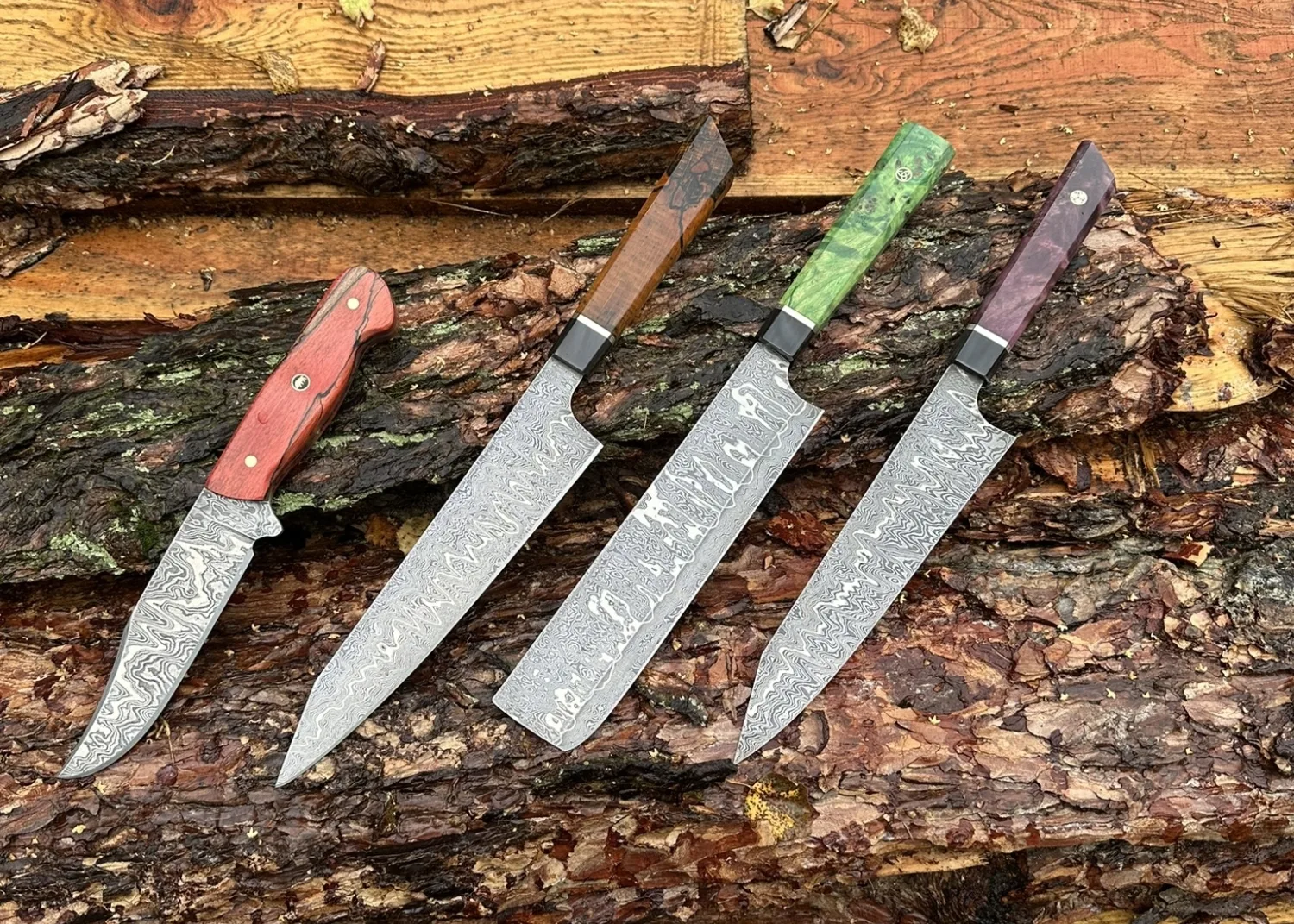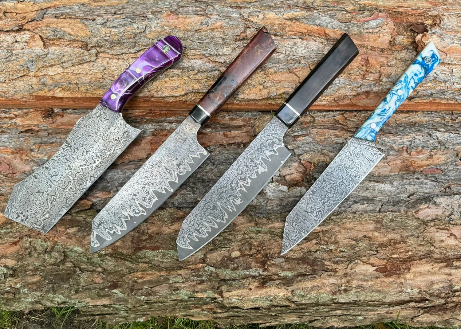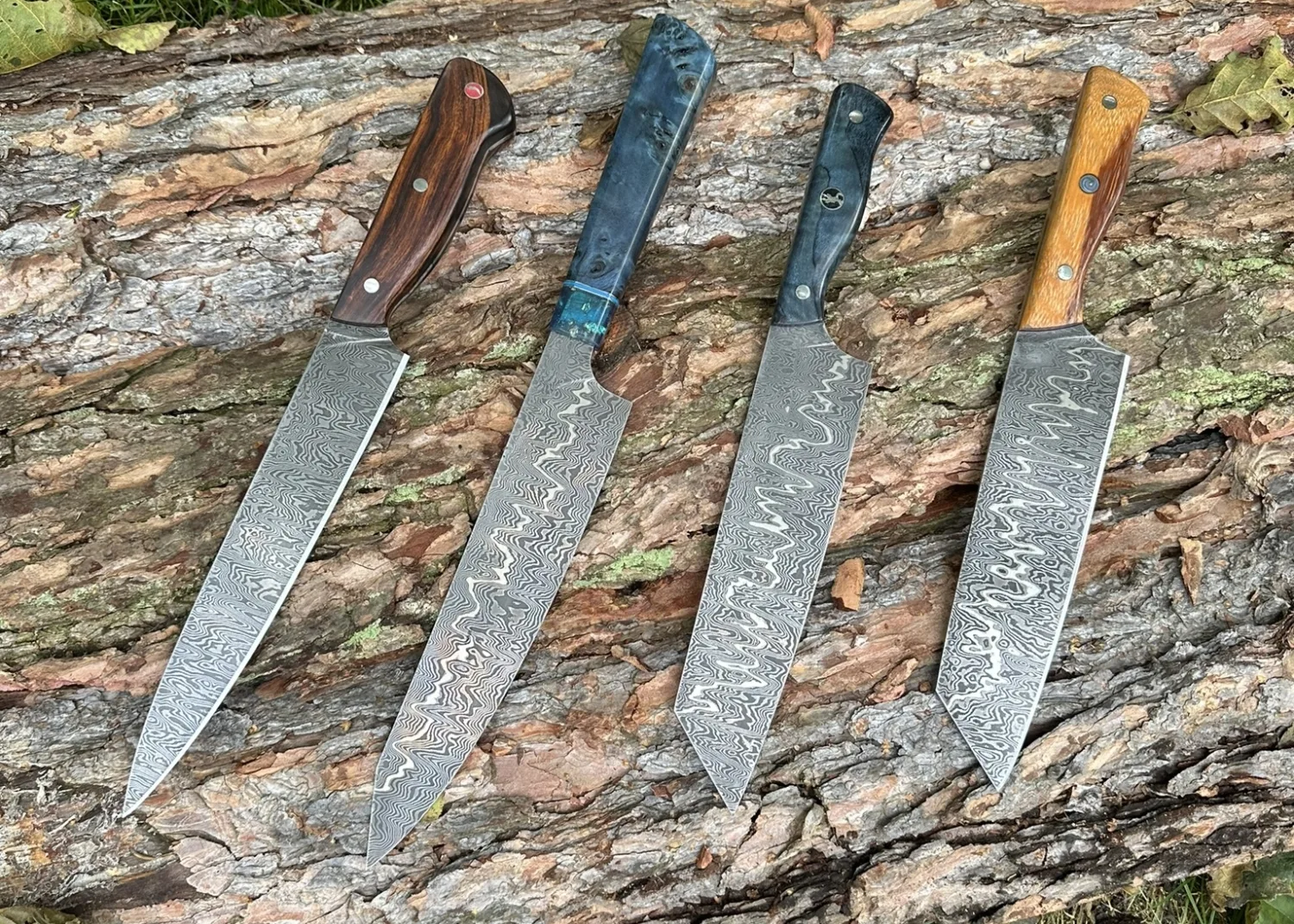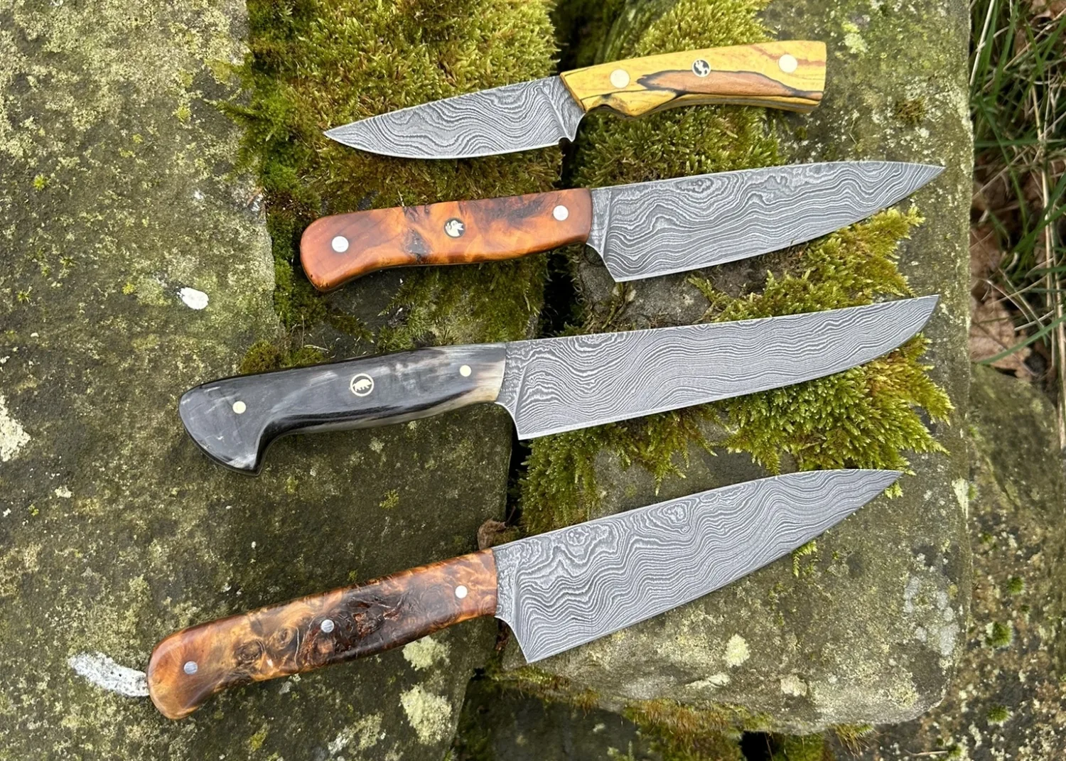 Deze smeden gingen u voor en presenteren hier hun zelfgemaakte mes. Iedereen vol enthousiasme over het smeden, de omgeving, de lunch, de verzorging en het prachtige resultaat. Zeker het van A tot Z zelf mogen doen werd gewaardeerd.