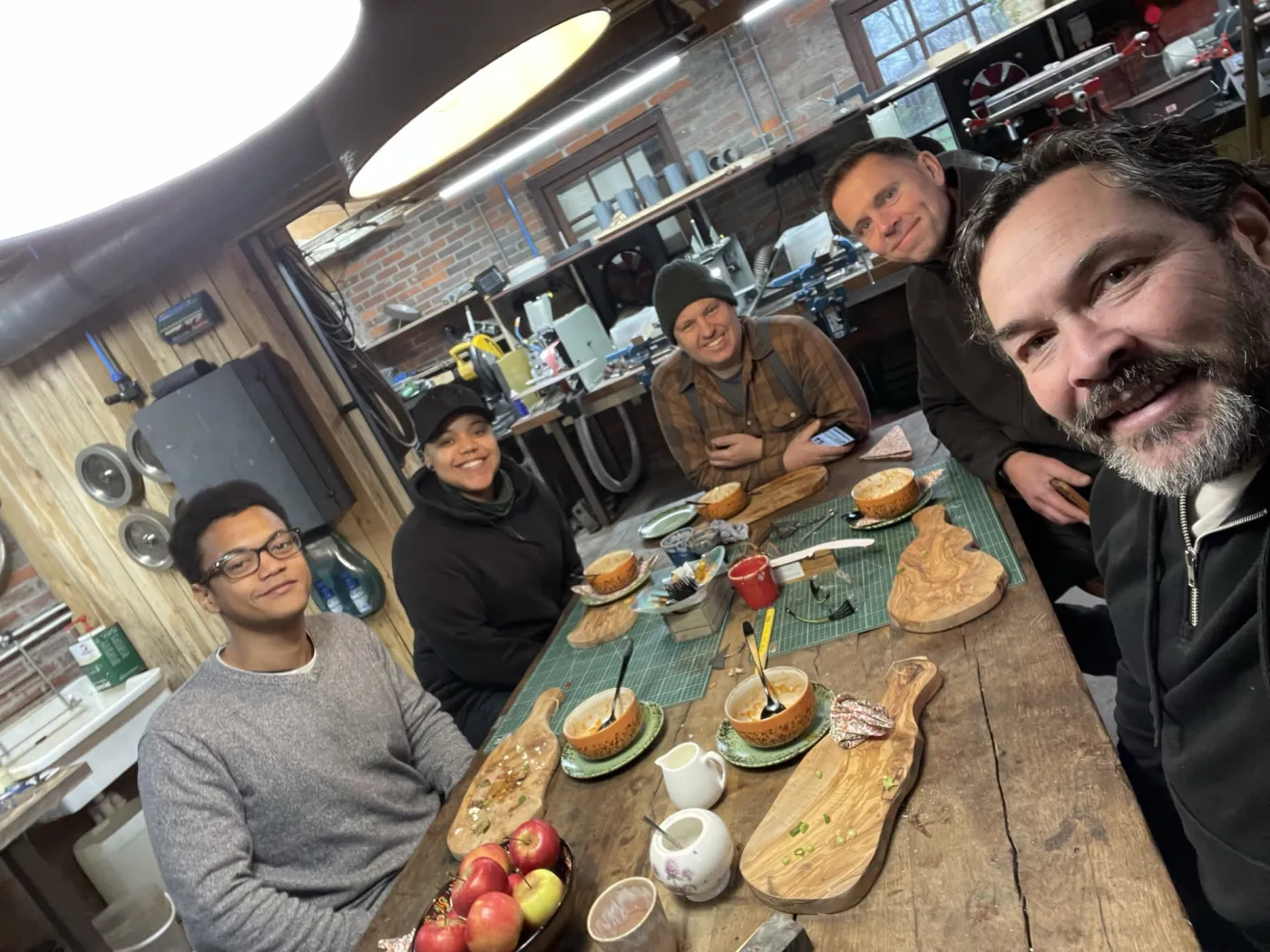 We ontvangen we u in onze smederij met koffie/thee en een plak Twentse krentenwegge. Na een korte uitleg ontwerpen we samen uw ideale mes. Dat kan een klassiek koksmes, jachtmes, vleesmes, Japanse Santoku of outdoor-mes zijn of iets heel eigens. U kiest uit ons grote aanbod van natuurlijke en gestabiliseerde houtsoorten en spectaculaire composietmaterialen uw handvat. Wij helpen u te komen tot uw perfecte ontwerp.