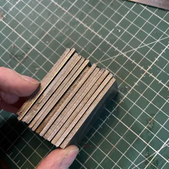 De rest van de dag besteden we aan het het handvat. Gestabiliseerde houtsoorten en luxer pinmateriaal kan eventueel tegen een meerprijs gebruikt worden. Fossiele materialen kunnen niet verwerkt worden tijdens deze basiscursus evenals het aanbrengen van een krop of het doorvoeren van een cryo-behandeling vanwege de tijd. Door het handvat te schuren en polijsten komt de ware schoonheid van het hout of composiet tevoorschijn. Het mes wordt na afloop door ons uit de vrije hand op een "Mado Superschliff" nat-slijpmachine haarscherp geslepen. Met alle messen die onze smederij verlaten kunt u zich in principe scheren.
