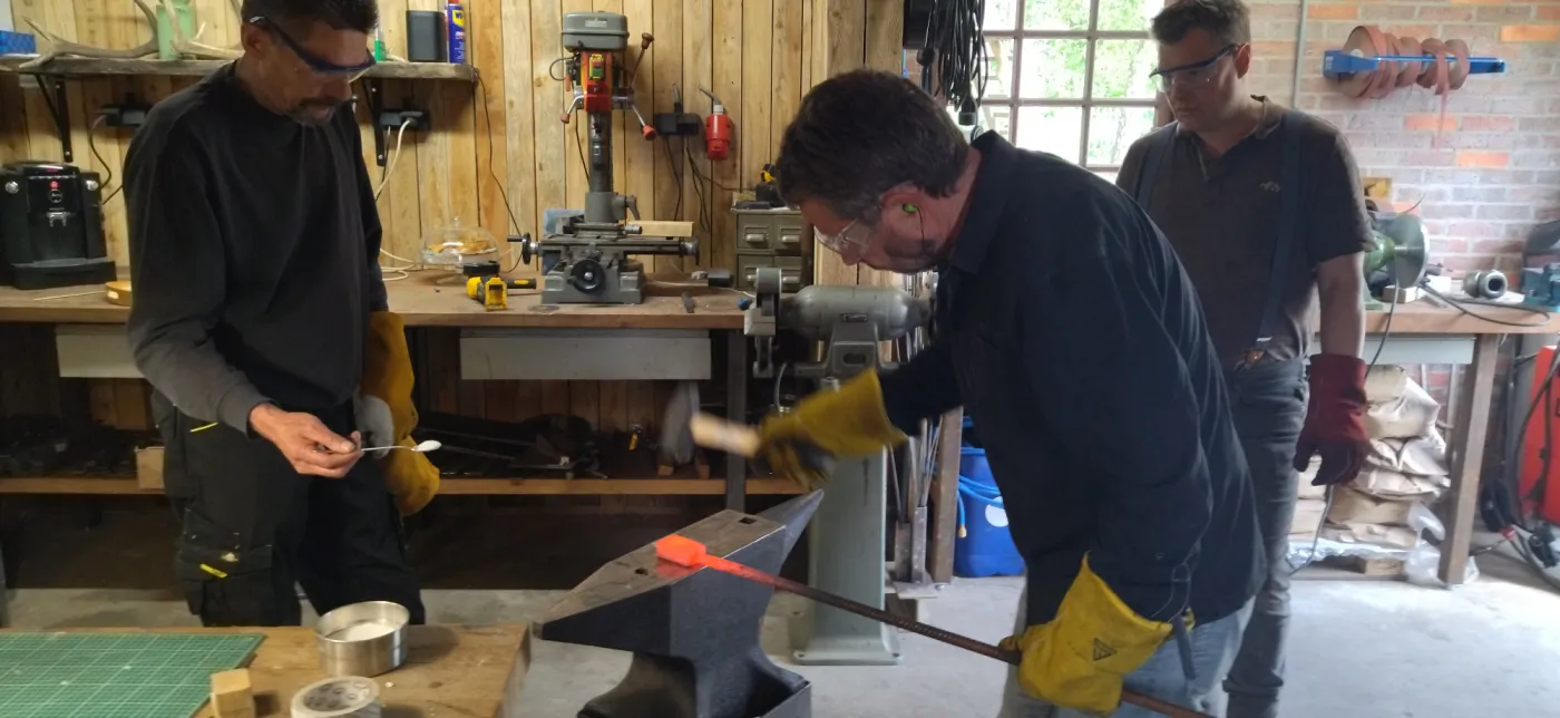 De eerste dag ontvangen we u in onze smederij met koffie/thee en een plak Twentse krentenwegge. Na een korte uitleg ontwerpen we samen uw ideale mes.