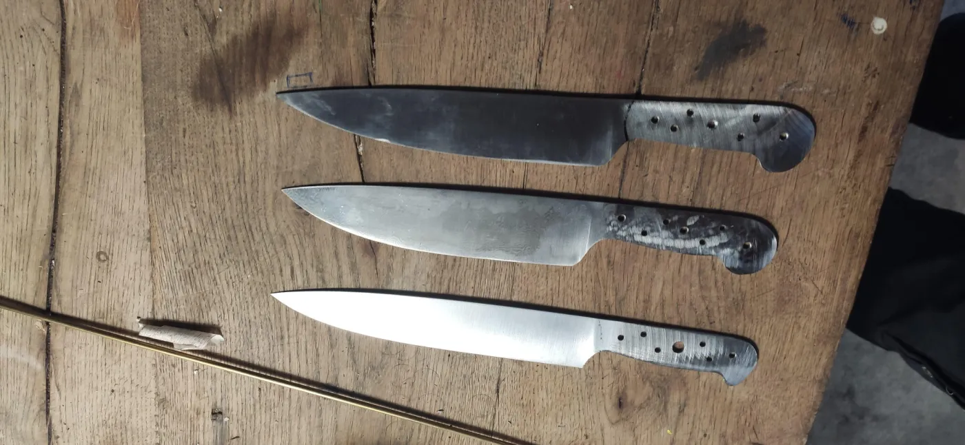Tijdens de BASIS cursus smeden we koksmessen met een lemmet tot 16 cm lang en 4,0 cm hoog of een jacht- / outdoormessen met een lemmet tot 13 cm lang. We smeden wilde damast tot 200 lagen. Voor de handvaten staan luxe houtsoorten en carbon-, messing- en rvs-stiften ter beschikking.