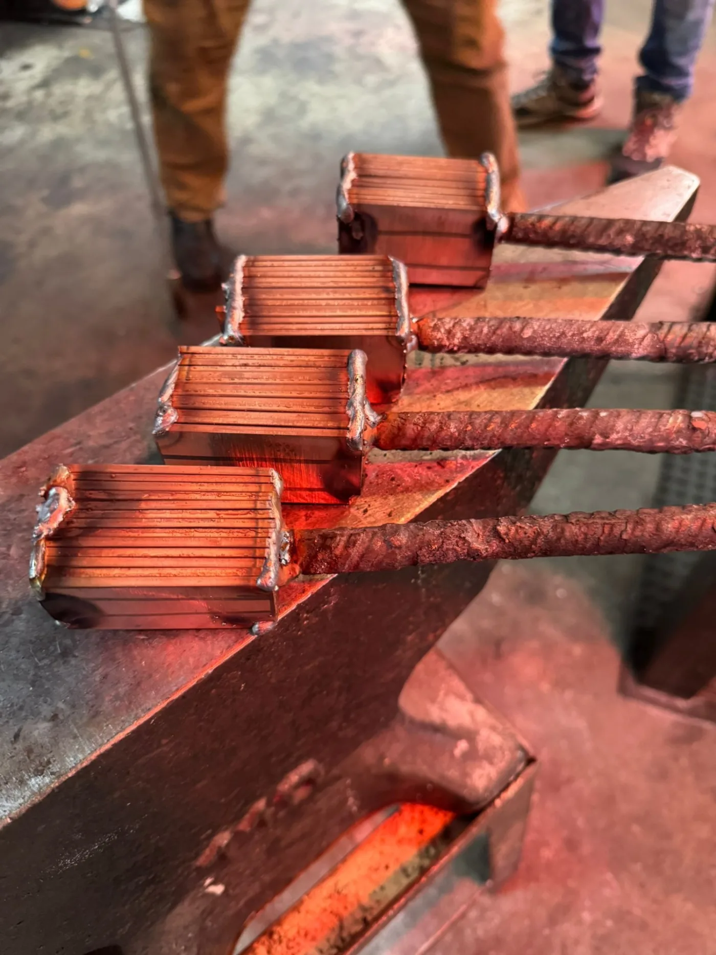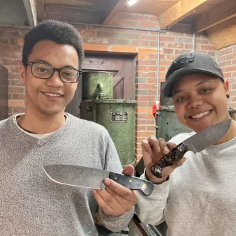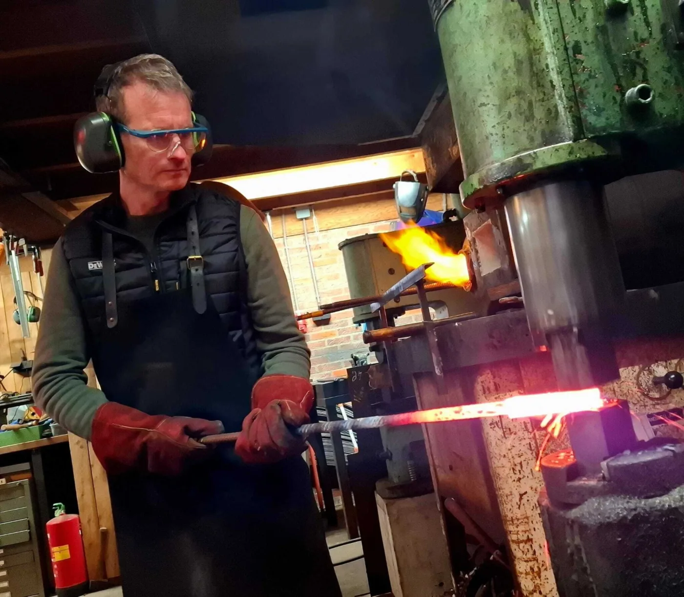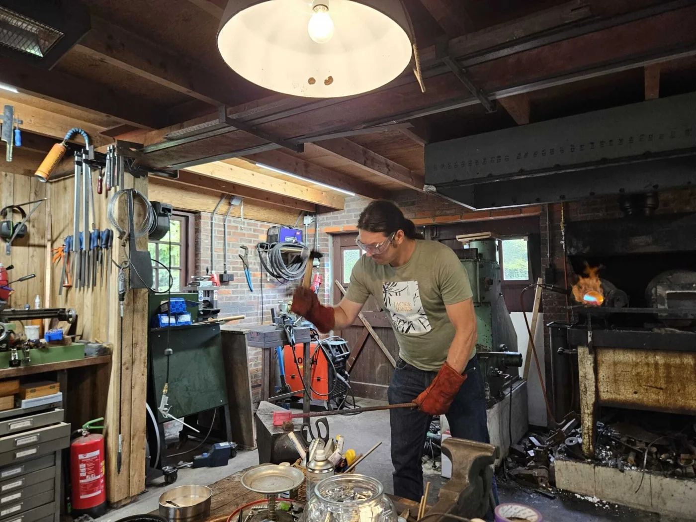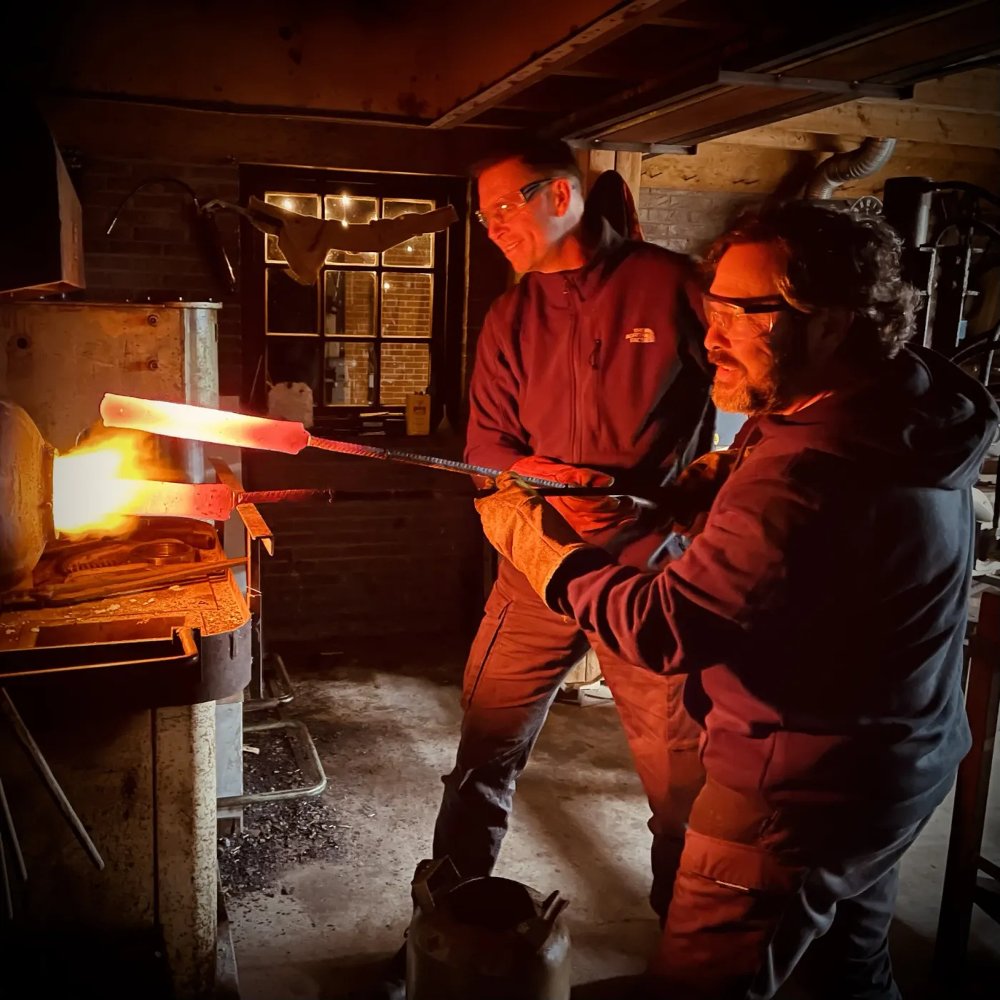 Na het ontwerpen van het mes begint het echte werk. U stelt uw eigen damastpakket samen om deze vervolgens, met behulp van hamer, aambeeld en luchthamer te vuurlassen. Dit pakket vouwen we verschillende keren om te komen tot het gewenste aantal lagen. Deze dag beleeft u echt het oude ambacht en de hitte die nodig is om het staal te smeden. Het eindresultaat wordt genormaliseerd en ondergaat gedurende de nacht een hittebehandeling in de oven zodat ons werkstuk de volgende dag de juiste materiaaleigenschappen bezit om er een kwalitatief hoogstaand mes van te maken!