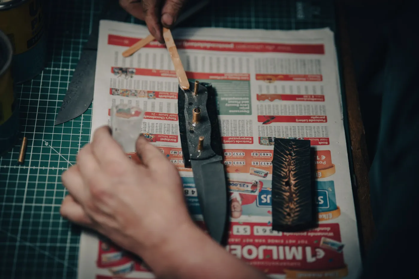 Vandaag wordt het gekozen handvat gemonteerd en in vorm gebracht. Door het handvat te schuren en polijsten komt de ware schoonheid van het hout of composiet tevoorschijn. Opnieuw uen wauw-momentje!