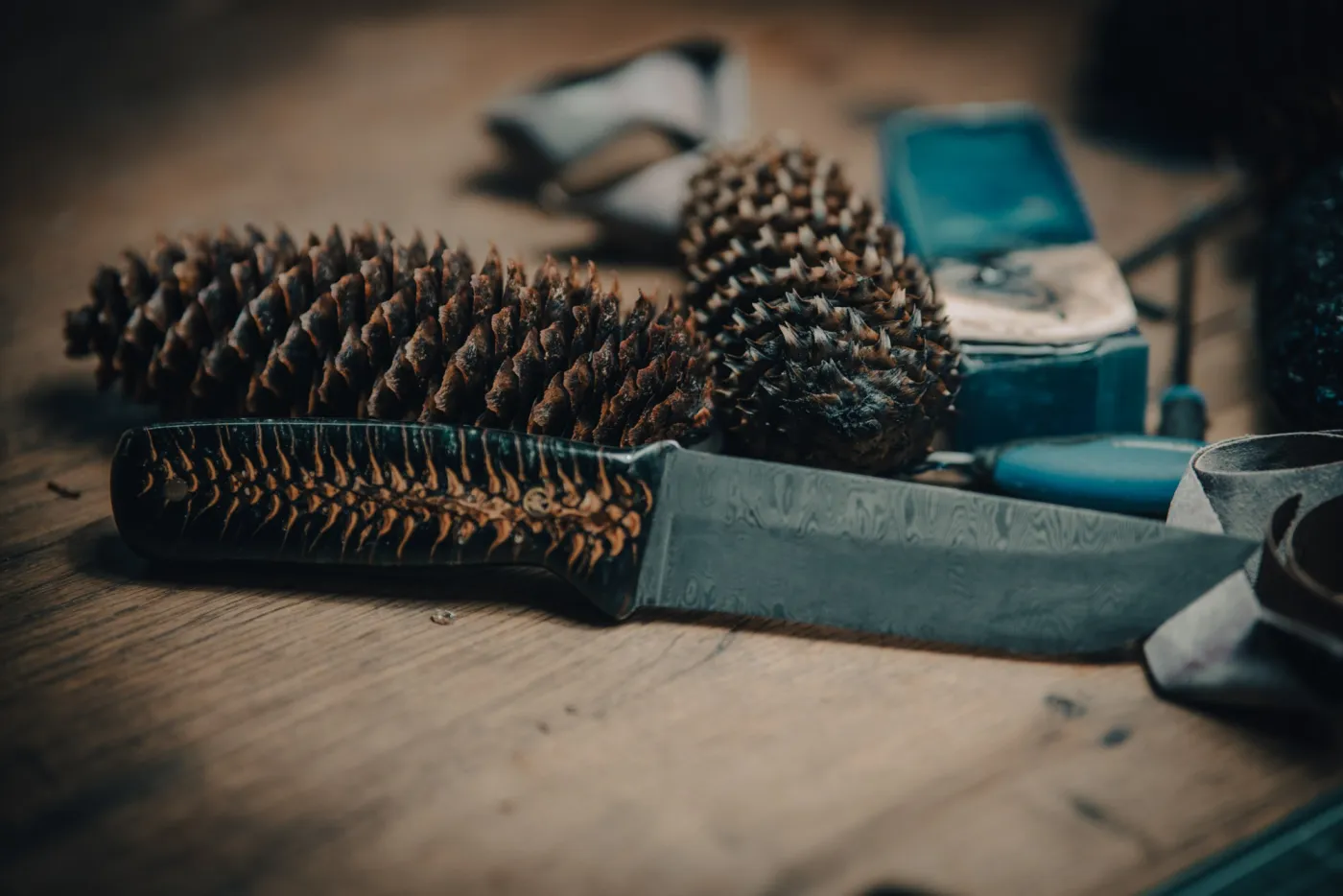 Bij de PREMIUM DAMASTSMEEDCURSUS kunt u kiezen uit ons gehele assortiment handvatmateriaal, ook fossiele materialen. Monteren (klinken) van een messing of rvs krop aan het mes is mogelijk.